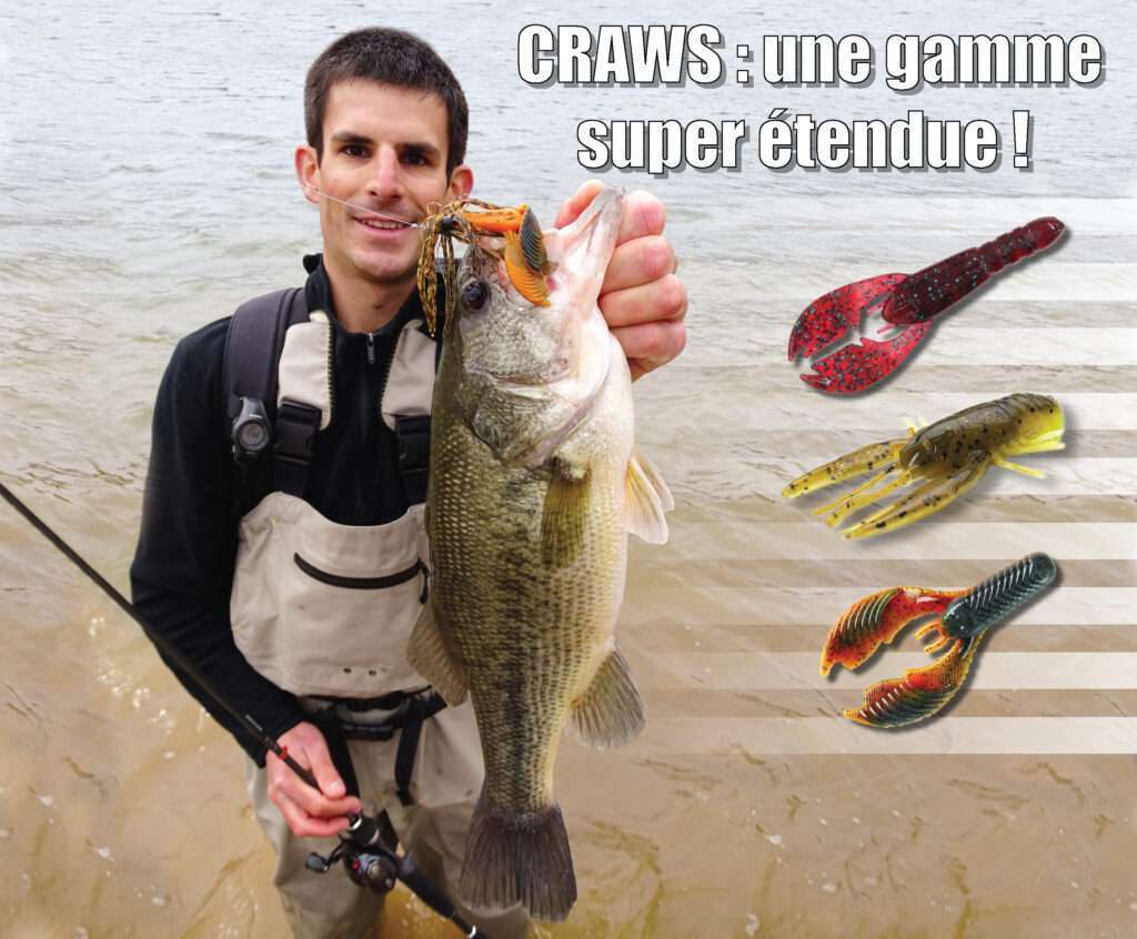 Les leurres souples craws (imitation d’écrevisse) rencontrent de plus en plus de succès auprès des pêcheurs français. Et c’est logique puisque les écrevisses sont si présentes dans beaucoup de rivières et de nombreux plans d’eau que les carnassiers peuvent se focaliser uniquement sur cette proie abondante et facile à chasser. La craw est alors un leurre redoutable d’efficacité !