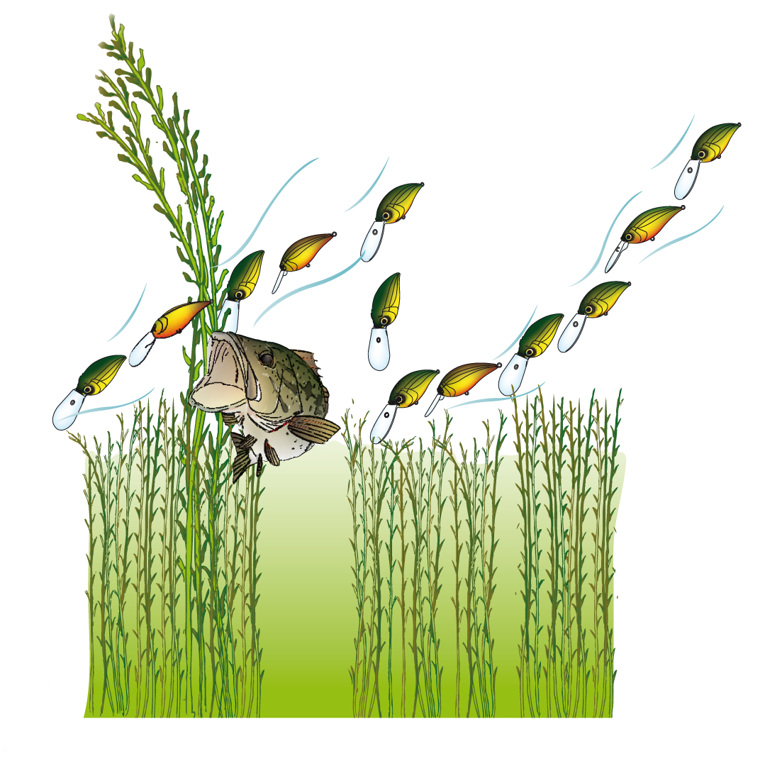 Même s’il fonctionne en simple lancer-ramené, n’hésitez pas à effectuer quelques arrêts. Flottant, il remontera alors vers la surface en vacillant sur lui-même. En alternant ainsi pauses et récupération, le Sashimi Mid Cranck nagera en « dent de scie » et couvrira plusieurs couches d’eau. Cette animation très simple est d’une redoutable efficacité au dessus des herbiers situé à mi profondeur car elle permet d’insister sur chaque poste et de déclencher l’attaque des carnassiers les plus récalcitrants. Un maniement qui est également excellent le long de rives écroulées, des cassures ou encore des frondaisons où les poissons se trouvent en embuscade.