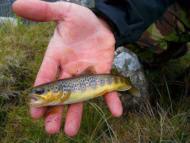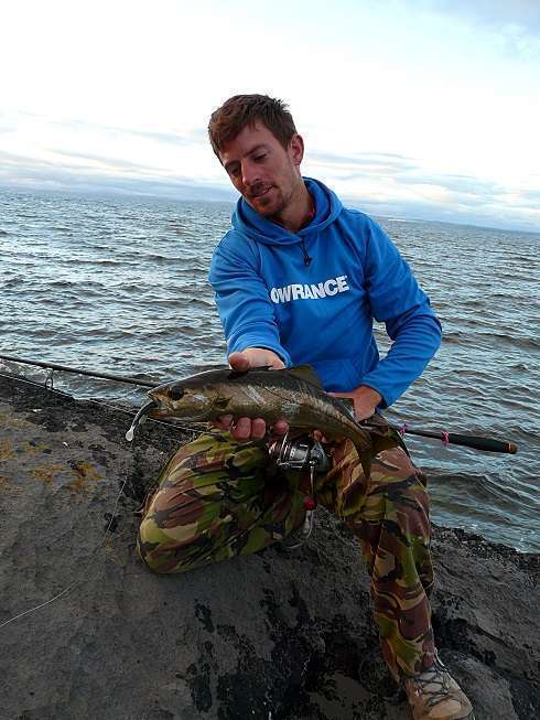 Nous nous sommes aussi essayés à la mitraillette garnie de lanières de maquereaux pour toucher d’autres espèces, nous prendrons quelques roussettes et tacauds très gourmands. Nous avons passé une nuit sur une des Iles d’Arran qui sont vraiment très belles et ne manquent pas de ballades au bord de mer mais aussi dans les terres. Là non plus le poisson ne manque pas et je raterai ma plus belle prise du séjour, un lieu estimé a 4 ou 5 kilos !!! Je ferai quelques lancers dans une rivière typique du pays, histoire de prendre ma première truite, petite mais avec une robe magnifique: