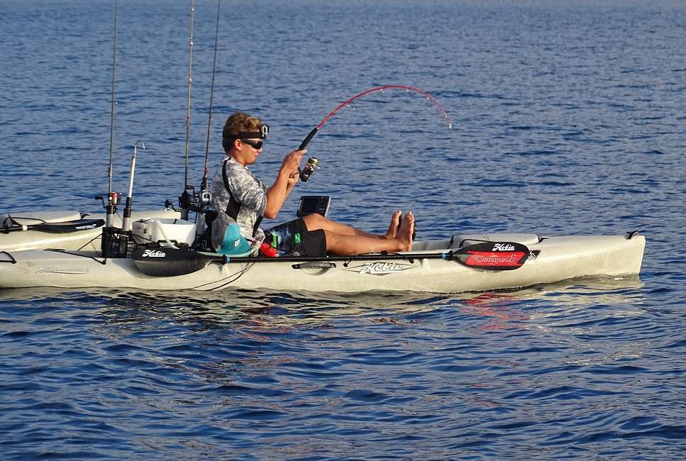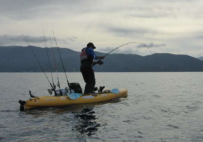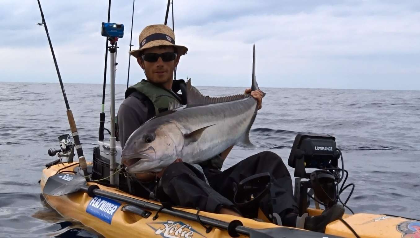 Vincent est le premier à en sortir une et ça commence fort avec plus de vingt kilos à maîtriser dans son kayak !