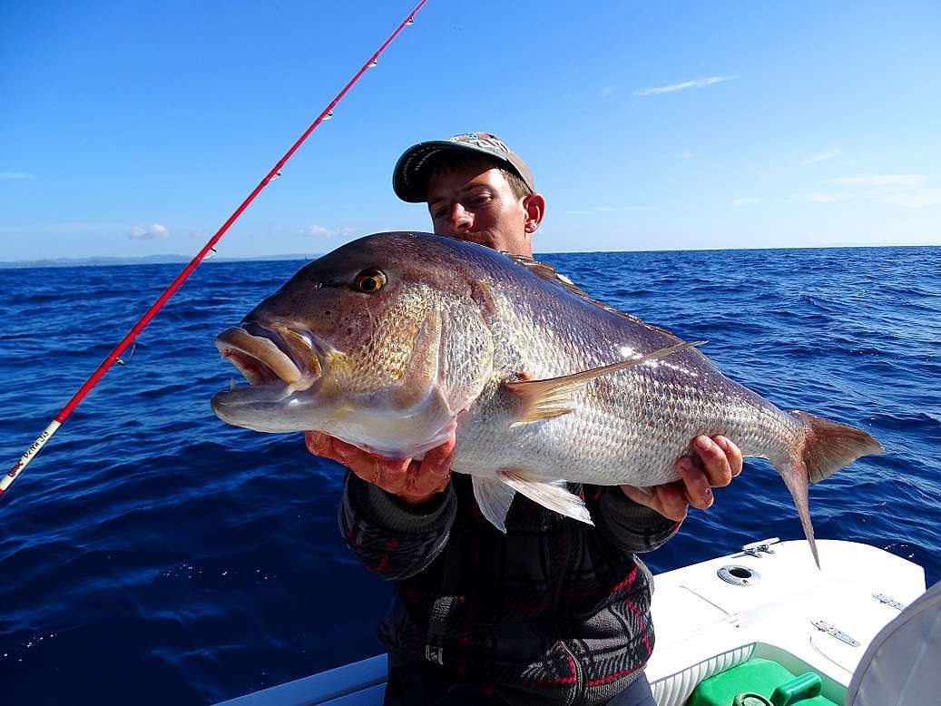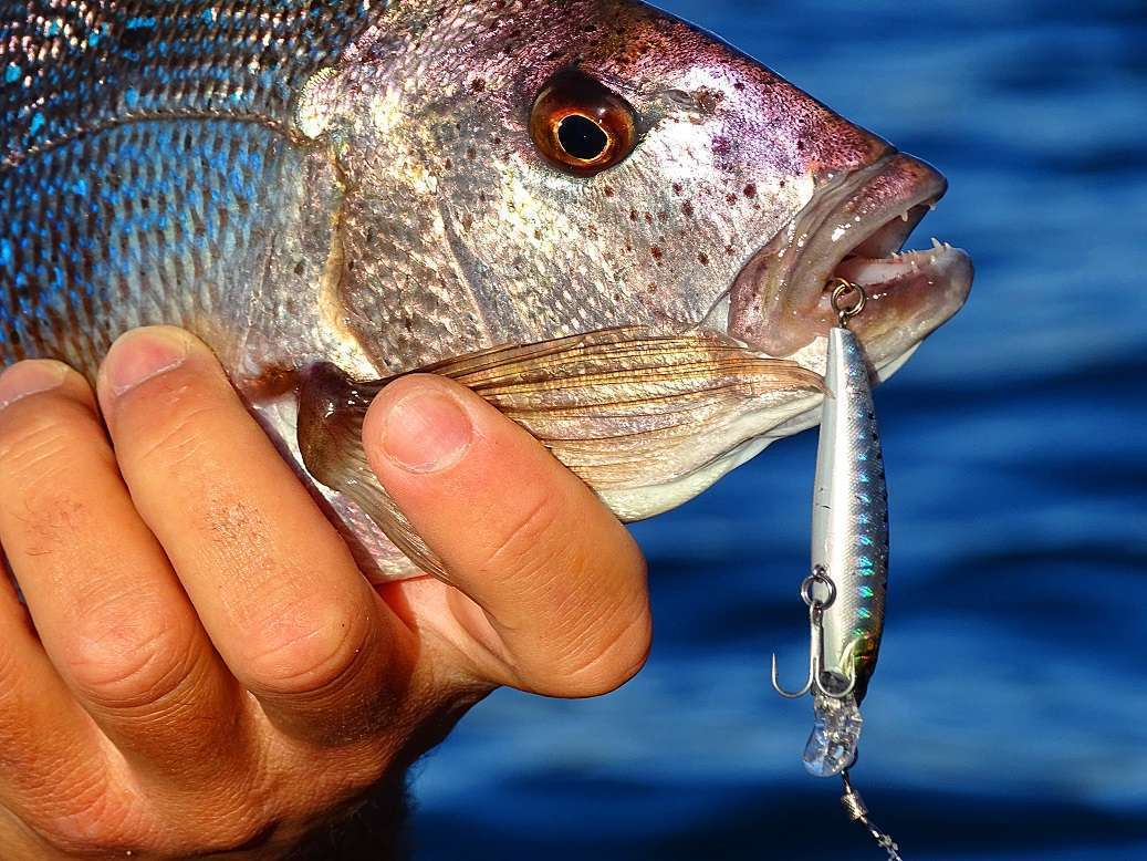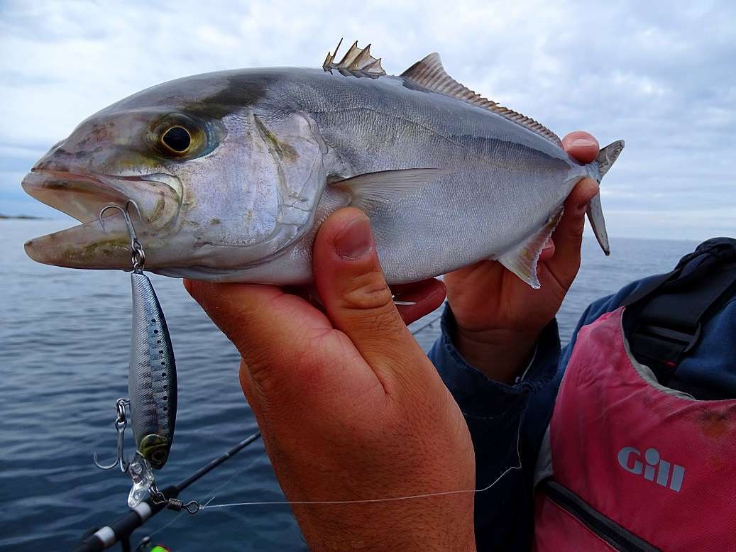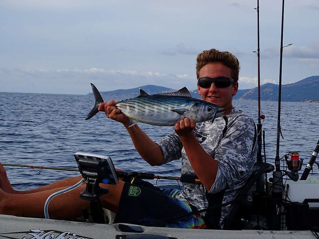Lors des déplacements nous en profitons pour traîner, et à ce petit jeu, le Yo-zuri « Eba minnow » s’avérera redoutable, avec une grande variété de prises dont une belle pélamide pour Bastien:
