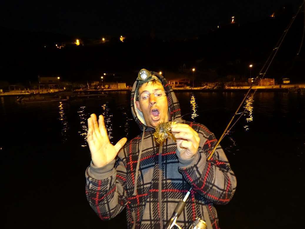 Le vent et la pluie ne nous empêcherons pas de sortir un soir faire un coup de rockfishing avec le fils d’un ami. Rascasses, chapon, gobies, seiches et calamars nous feront passer une bonne soirée.