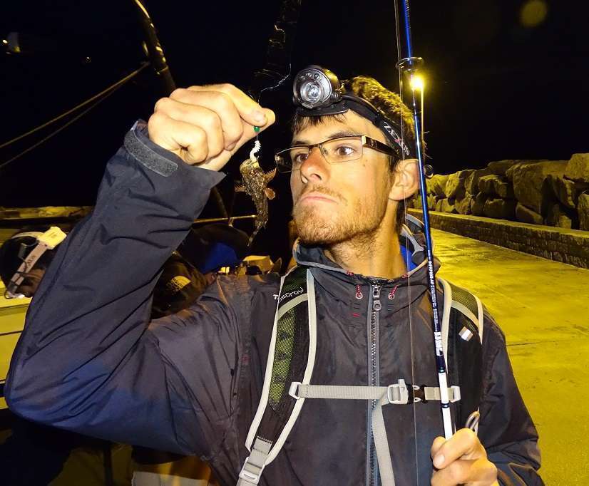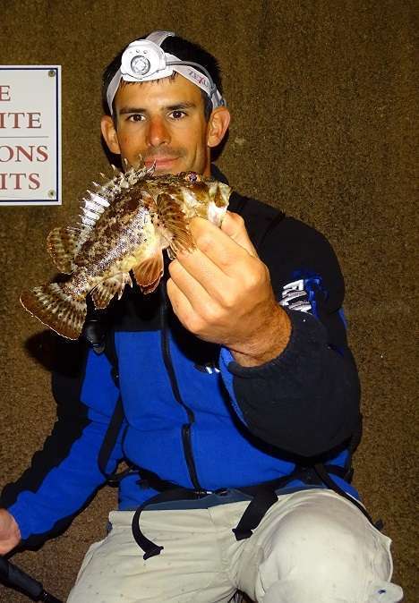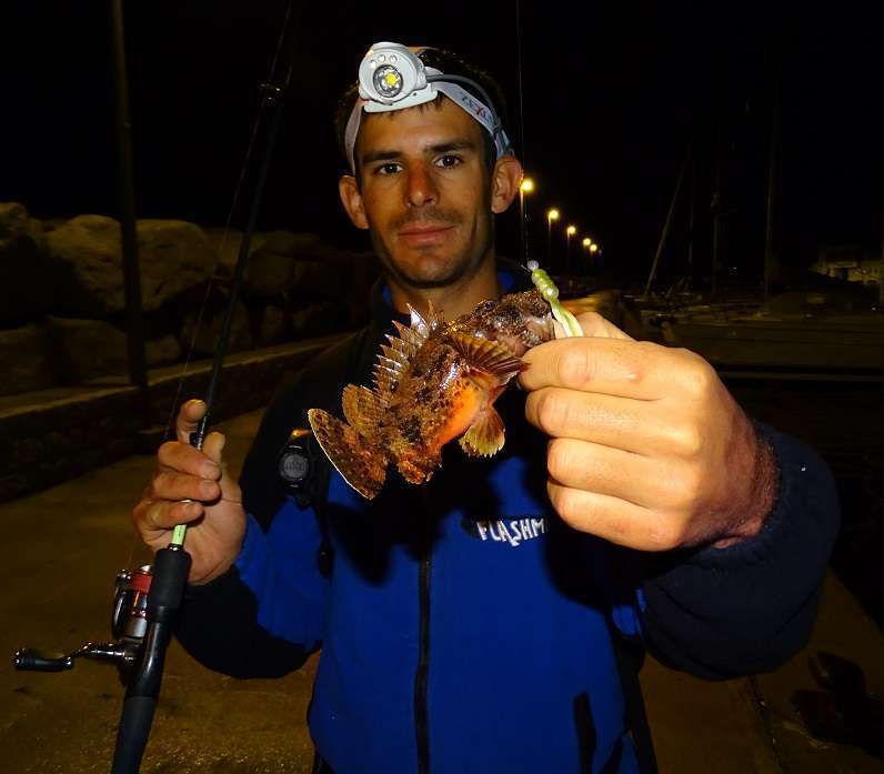 Colin n’en revient pas de sortir ce qui est sans doute la plus grosse rascasse du port…