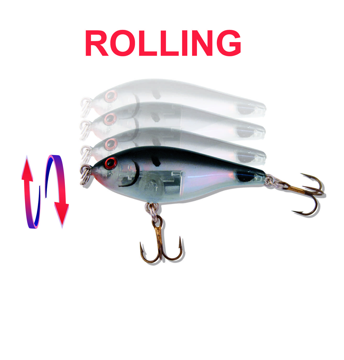 Son aptitude naturelle à osciller sur lui-même grâce à son centre de gravité très bas (rolling) fait qu’il adopte une nage louvoyante en S sur une simple récupération lente et continue. Lors des arrêts, il coule lentement (slow sinking) comme une proie moribonde en montrant alternativement ces flancs de manière très provocatrice. Cette coulée vacillante en rolling est particulièrement attractive et il sera donc conseillé d’effectuer des pauses de quelques secondes lors l’animation pour tirer le meilleur parti de ce leurre.