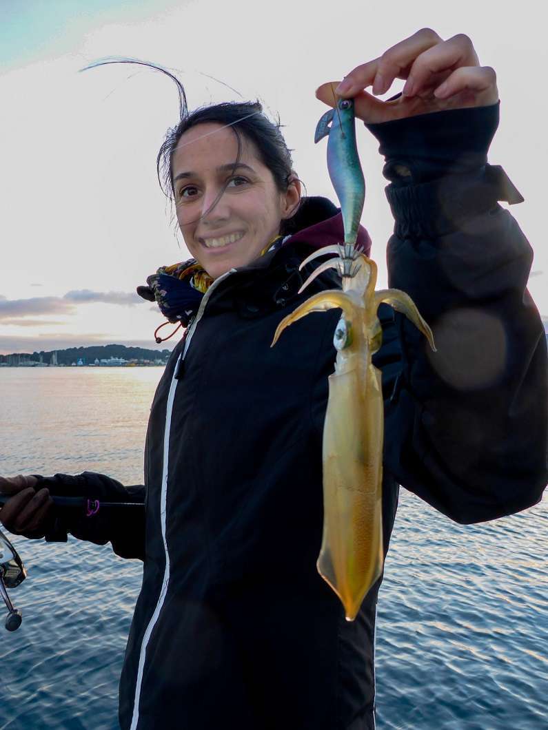 Avec la pleine lune de ces derniers jours et l’eau très claire, j’utilise des turluttes de coloris naturel car les calamars les voient de loin avec leur excellente vue et je n’ai pas besoin d’utiliser des couleurs flash que je réserve plutôt pour les nuits sans lune. Les calamars sont des animaux vraiment imprévisibles et les leurres qui ont fonctionné la veille ne vont pas forcément marcher le lendemain, c’est pourquoi il est important d’avoir une gamme de turluttes de toutes les tailles et couleurs afin de parer à toute éventualité.