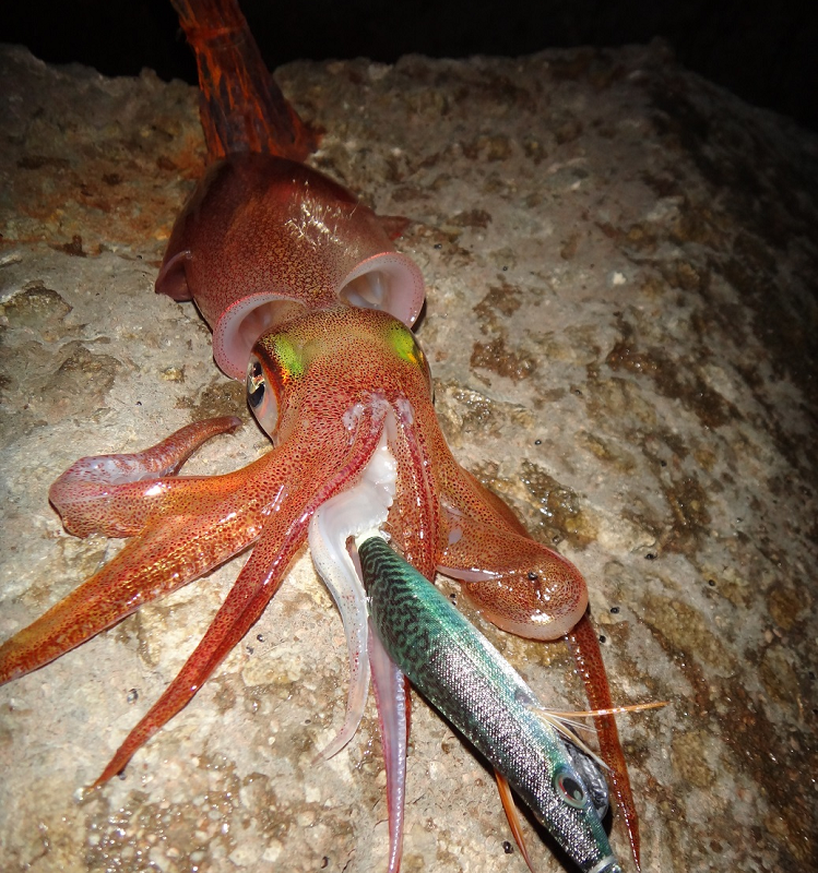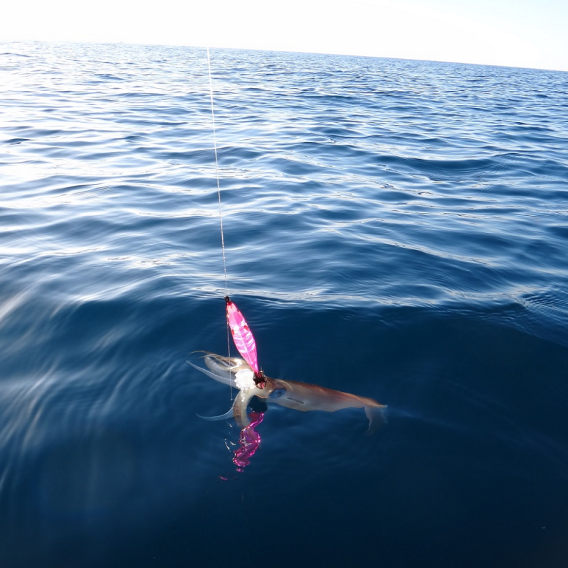 Après de nombreuses années passées à traquer les calamars nous avons remarqué avec mes frères que la couleur de nos leurres était très importante pour la traque des calamars. Ils ont une excellente vue et s’ils captent très bien les mouvements (expliquant l’efficacité de l’animation en « bich-bachi ») ils perçoivent également très nettement les couleurs et les reflets lumineux.