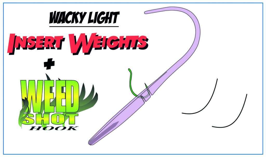 Le wacky est une technique excellente pour les pêches de précision. Il est ainsi possible de l’utiliser pour les pêches à vue, lorsque les carnassiers restent à proximité de la surface aux beaux jours (ex : black bass). Nous vous conseillons alors de l’utiliser sans plombée (weightless) ou avec juste avec des Insert Weights Lunker City. Cette technique permettra de prospecter précisément des spots porteurs tels que les frondaisons des arbres, les branches tombées à l’eau, l’abord d’une rive très découpé, à proximité d’un herbier, etc. Non plombé, il sera conseillé d’attendre après le lancer qu’il coule jusqu’au fond  bannière semi-tendue afin de ressentir les touches lors de la descente. L’animation s’effectuera par quelques tirées qui le feront remonter. Les pauses seront relativement longues afin de bien le laisser redescendre dans la couche d’eau. C’est souvent lors de ces arrêts que le leurre est attaqué.